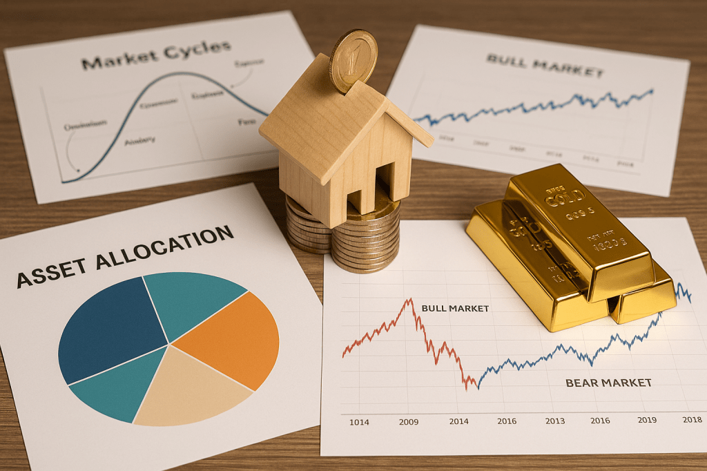 Every market goes through phases. Real estate, for example, often moves in 7–10 year cycles of booms, corrections, and recoveries. Gold has its own rhythm, usually influenced by inflation, interest rates, and global uncertainty. The S&P 500? It swings between bull runs and bear markets—yet over the long term, it has consistently gone up.